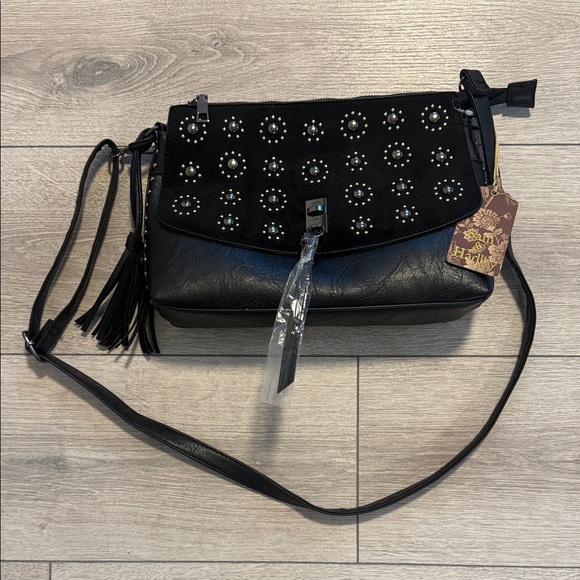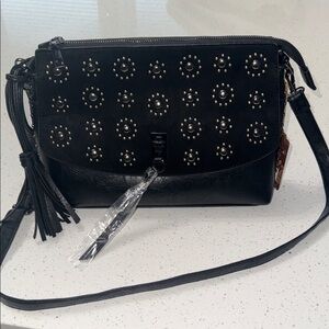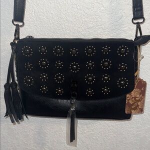 Sam & Hadley black studded leather crossbody Black