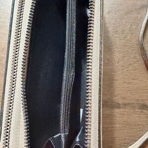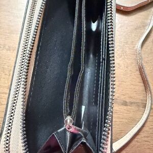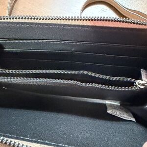 * interior features two open compartments, one zippered compartment and multiple slip pockets perfect for identification and credit cards