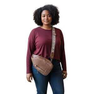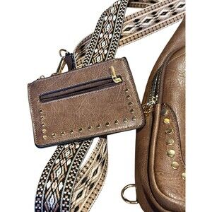 Sam & Hadley Guitar adjustable Strap Sling Bag Brown Stud Embellishments coin