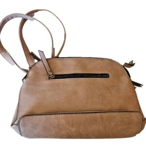 Studded shoulder bag with 3 main compartments with slight marble patterns.
