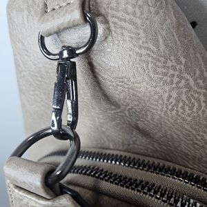 This Sam & Hadley Boho Studded Cross Body Bag for Women features a beige faux leather exterior with studded accents. It offers a stylish and trendy option for carrying essentials while adding a touch of bohemian flair to any outfit. Has adjustable strap for a comfortable fit, in excellent pre-loved condition, no signs of use.