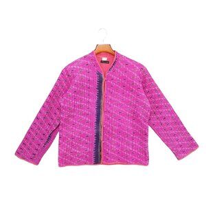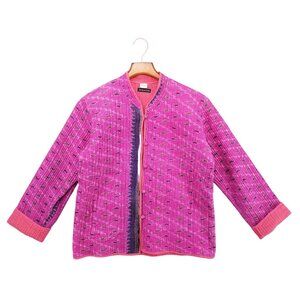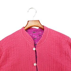 Sam Hilu Classic Reversible Jacket Womens 100% Silk Purple Pink Button Up Size M