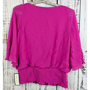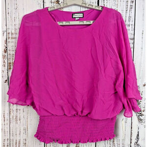 Sam & Jess Smocked-Waist Top Fiercely Fuchsia Women's Size S Pink
