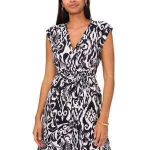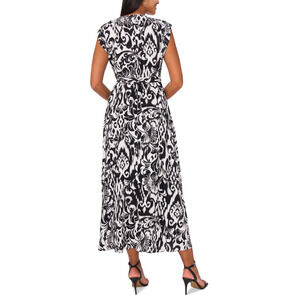 Sam & Jess Women Printed V-Neck Belted Maxi Dress Black/White Size L