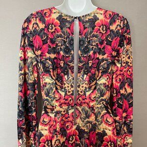 Sam & Lavi Anthropologie Selma Dress Midi Floral Graphic Size XS Peekaboo Back