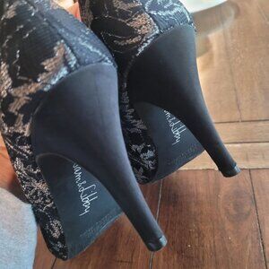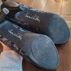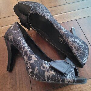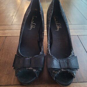 Sam & Libby Black Lace Peep-Toe Heels With Bow Detail Size 8M