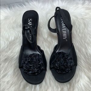 Sam & Libby Carmen Black Satin Heels Sz 8
