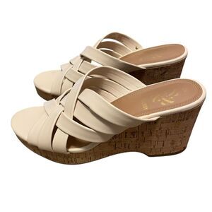 Sam & Libby Cayla Slide Cork Wedge Sandals Cream 8.5 NEW