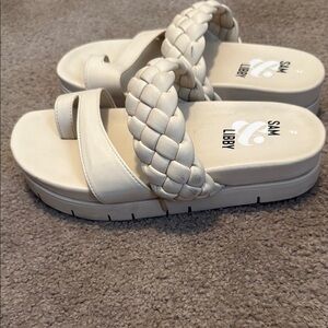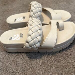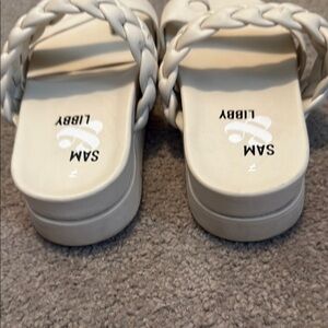 Sam & Libby Cream Slide Sandals with Quilted Strap