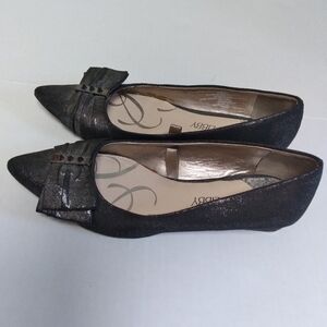 Sam & Libby Dark Gray Pointed Toe Bow Detail Flats Size 6