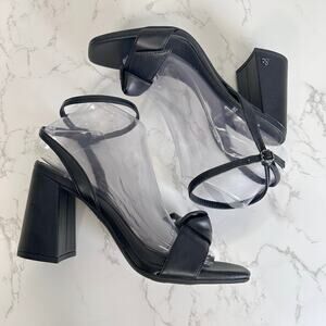 Women's Knot Front Jordan Jordan High Block Heel Ankle Strap Sandals by Sam & Libby, Black, US Size 7.5, Arch Support, Square Toe, Slingback, Buckle Closure, Adjustable Straps, Open Sides, Open Toe, Fashion, Stylish Dress Heels, Pumps, Designer, Evening, Party.