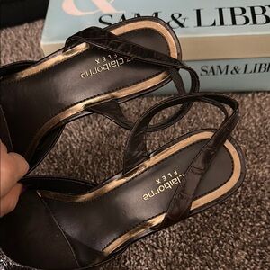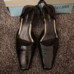 Sam & Libby Liz Claiborne Dark Brown Square Toe sling backs size 7.5