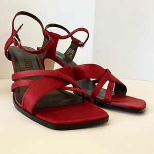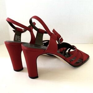 Elegant formal dress shoe in dark red with matching red t-strap. Worn only once by maid of honor at a winery, hence why the soles show wear — originally purchased in early 2000s. Time to let these beauties find a new home. Perfect formal shoes for any season.