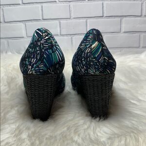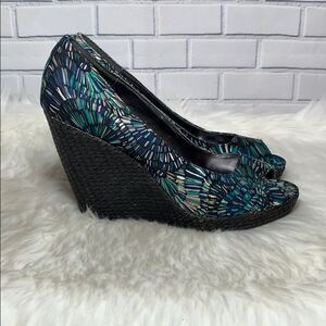 Sam & Libby Mon Ami Print Peep Toe Wedge Sz 8