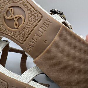 Sam & Libby Rhonda Gladiator Sandals Womans 6 Gray Gold Bling Rinestones Strapy