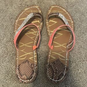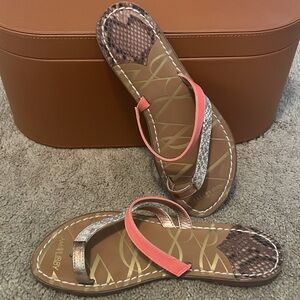 Coral, rose gold, and snake skin pattern.