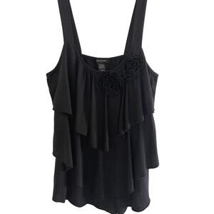 Sam & Max Black Tank with Ruffles/Roses Size Large