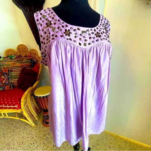 Sam & Max Designer Sleeveless Embellished Woven Top! Lilac! Great condition XL