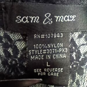 Sam & Max Black Lace Blouse – Women’s Large – Witchy Stretch V-Neck Henley with Ruffles
