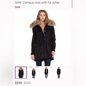 Sam. New York $925 Wool Blend Hooded Real Fur Trim Black Coat