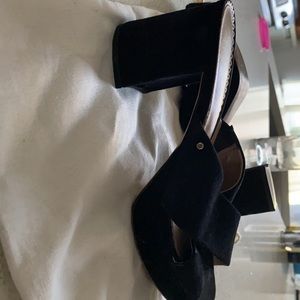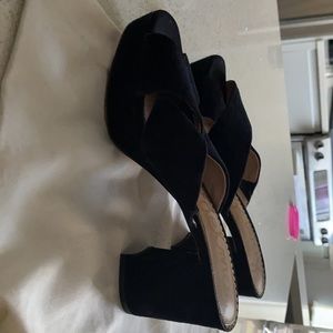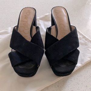 Sam Edelman black suede platform sandal. Stylish & comfortable. Good condition. Comes w/ dust bag