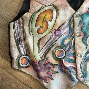 Sam Sam Genuine Leather hand painted leather vest size medium