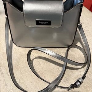 Great condition, excellent option for dressing up or adding some shine to your daywear. 4” handle drop and 22” adjustable cross body strap.