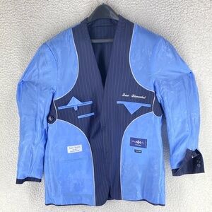 Sam Surin Bespoke Sport Coat 2-Button 44 Blue Pinstripe Surgeon Vented Super 150