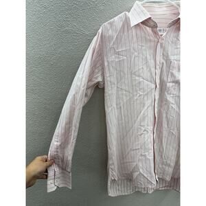 Sam Surin Mens New Royal Fashions Button-Down Shirt Pink Striped Long Sleeve
