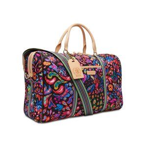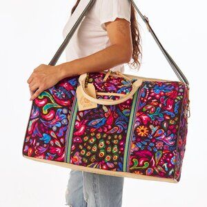 The largest duffel style, the Weekender, is the go-to for weekend road trips. This duffel bag is roomy enough for all your essentials and features leather handles, an adjustable webbing strap, two interior pockets, and two exterior pockets. If you’re looking for a TSA carry-on compatible bag, check out the Jetsetter or the Zipper Tote!