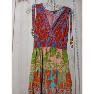 Sam and Jess Dress Womens Petite Medium Boho Floral Maxi Multicolor Tiered Pockets