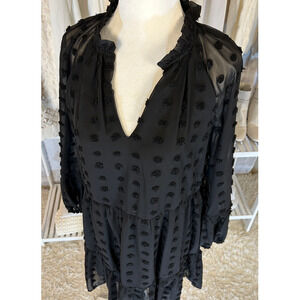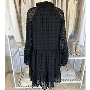 Sam and Jess Women's Size XS Black Swiss Dot Poet Sleeve Knee Length Dress