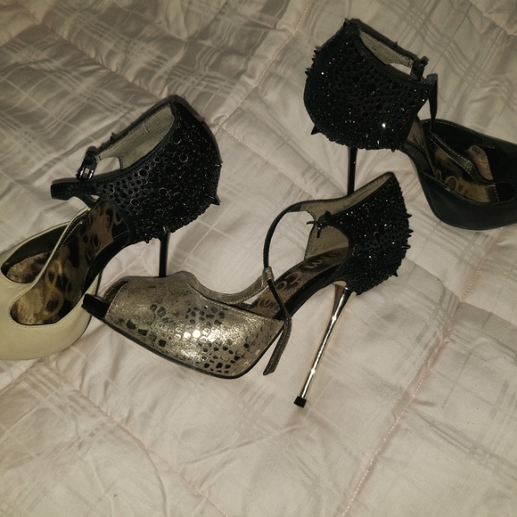 Selling my Sam Edelman spiked stiletto in almost new condition. Selling all three in black, cream and gold snake pattern with all three in black spike. Selling individually too. Just ask so I can make a separate listing. Thanks for looking 🥰