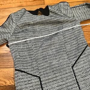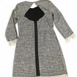 Sam Edelman Black White Tweed fridge open back dress with back full zipper size small nwot