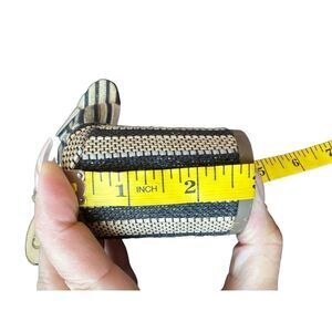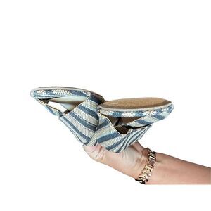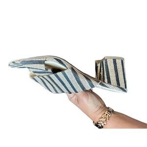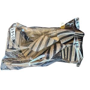 Sam Edelman Black and Tan Rattan Weave Slide Sandals