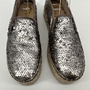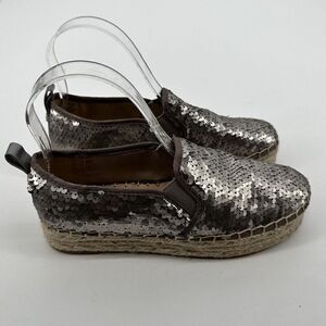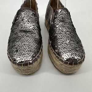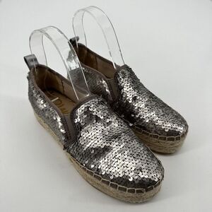 Sam Edelman Carrin Espadrilles Platforms Silver Sequin Women’s Size 6