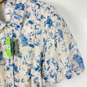 Sam Edelman Floral Embroidered Eyelet Puff Sleeve Mini Shirtdress White Blue, 14
