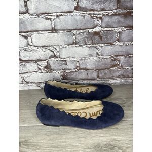 Sam Edelman Frances Blue Suede Leather Slip On Scalloped Flats Women Sz 9M US/39