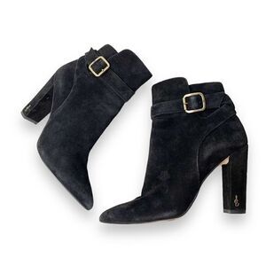 Sam Edelman Rita, Black Suede Booties, Block Heeled Buckle Boots, Women’s Size 7