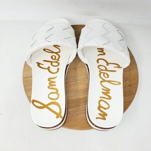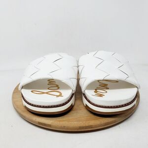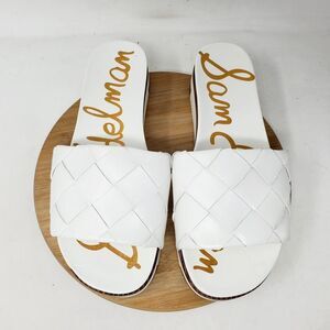 Sam Edelman Sandals Womens 7.5 Adaley White Slide Slip On Shoes Woven Platform