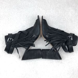 Sam Edelman Vermont Black Leather Peep Toe Cross Strap Tassel Ankle Boot