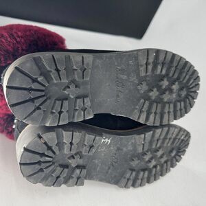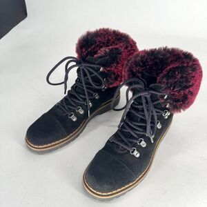 Sam Edelman Women’s Boots Bowen Black Suede Pink Fur Trim Lace Up Combat Sz 8