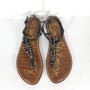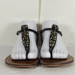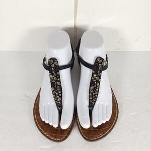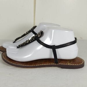 Sam Edelman Women's Gwyneth US 7,5 M Black Leather Rhinestones Thong Sandals.