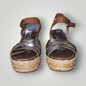 Sam Edelman Womens Size 9 Gold Buff Darline Platform Wedge Sandal