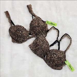 Sam Edelman Adjustable Cheetah Print Bra. Gorgeous lace print with adjustable feature to wear regular or racerback. Lightly padded with lace details.