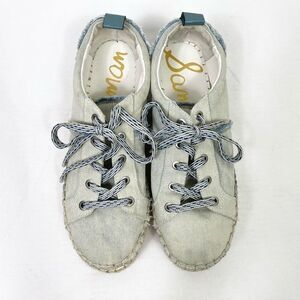 Sam Edelman Carleigh Blue Chambray Denim Lace Up Espadrilles Sneakers Shoes