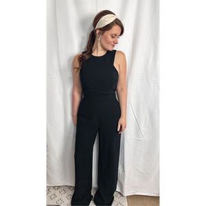 Sam Edelman romper || classy black with wide leg || very long, even with heels on this was too long for me as I’m 5’3. You’ll need to be at least 5’6 or above to wear this comfortably || size 6 || like new condition with no wear || pockets || open back, very flattering and contours your waist well ||
