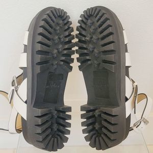 Taking inspiration from grunge styles, this strappy leather sandal features gleaming buckles and a sturdy lugged sole.