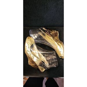 Leather peeptoe slingback wedge with cutout design on toe ombre gold metallic color