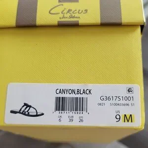 Brand new in box. Gorgeous pair of Women's Canyon Flat Sandals by Sam Edelman Circus collection. They are 100% Synthetic. Platform measures 0.25". The size is 9 Medium.